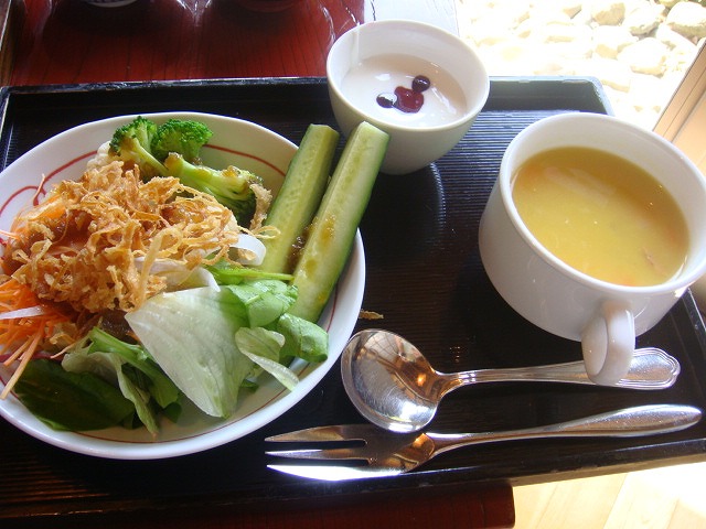 そんなゆめじサンおススメの店でゴ-ヤチャンプルとソ-キそば定食。