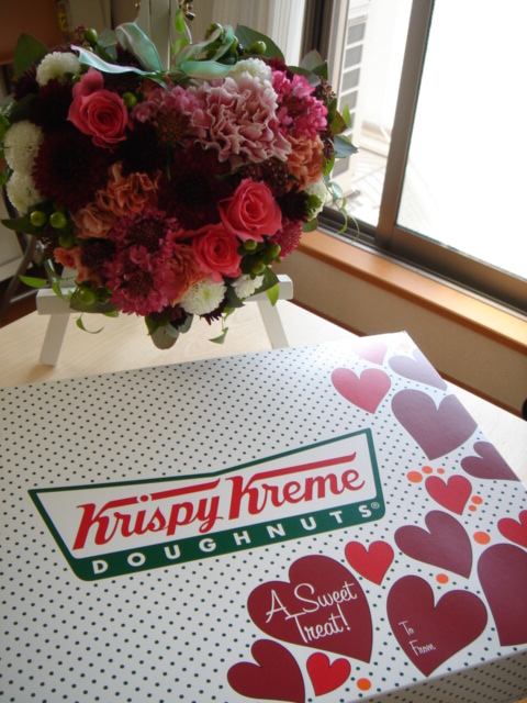 バレンタイン向けのなリースを部屋に飾って クリスピーのドーナツに